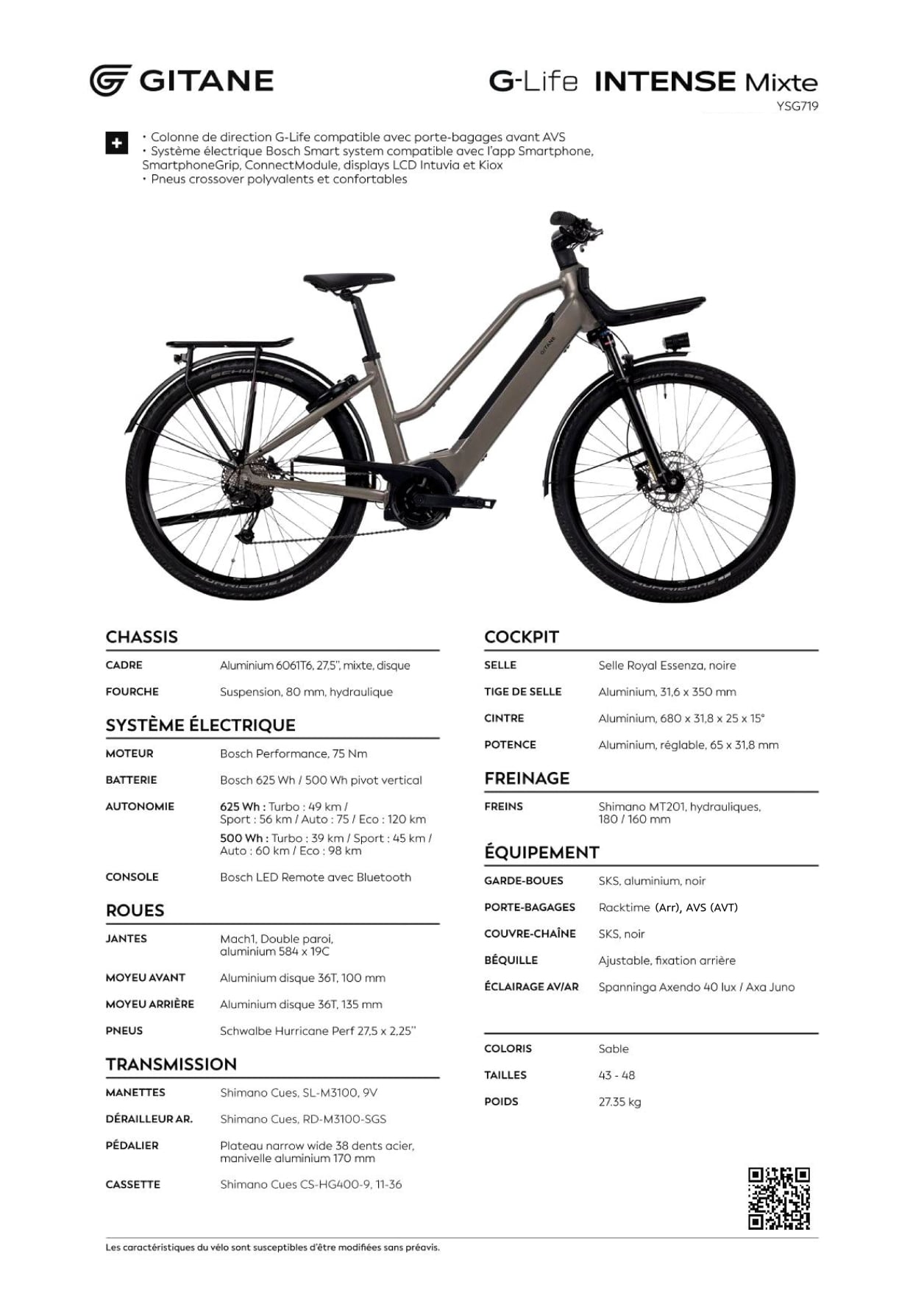 L'autonomie est à titre indicatif, selon l'effort réalisé par le ou la cycliste.